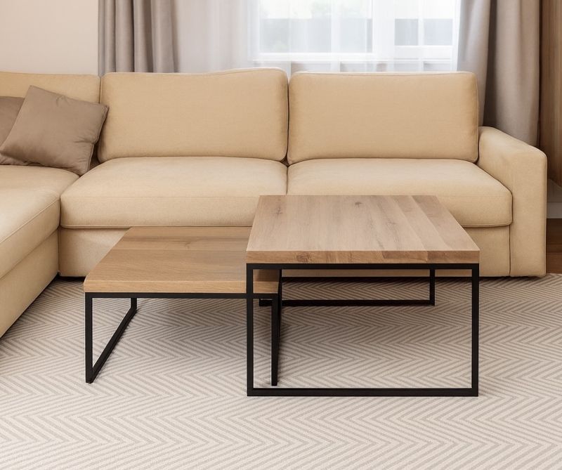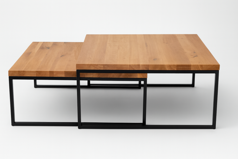 Холни маси от масивен дъб с различен размер могат да се поставят една под друга , успоредно . Омасляване на плотове в натурален цвят 3032 . Размери по избор на клиента .