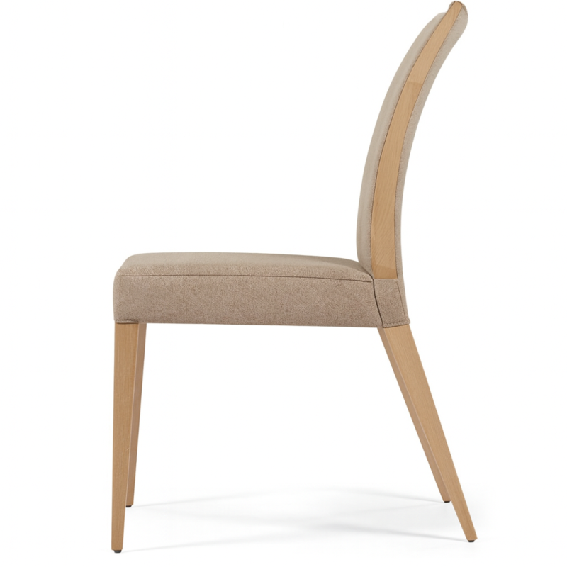 Стол без подлакътници, масивна конструкция от ясен, седалка и облегалка с тапицерия. Избор на тапицерия и цвят на краката.