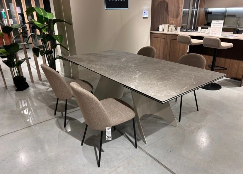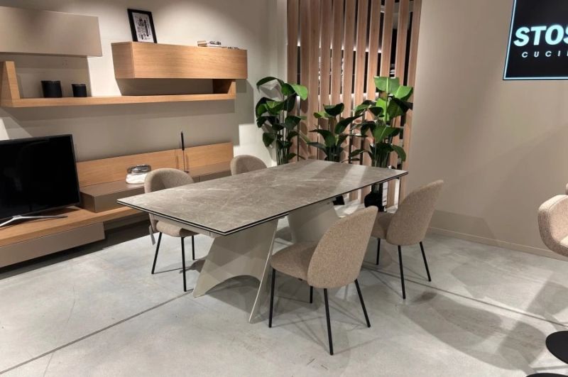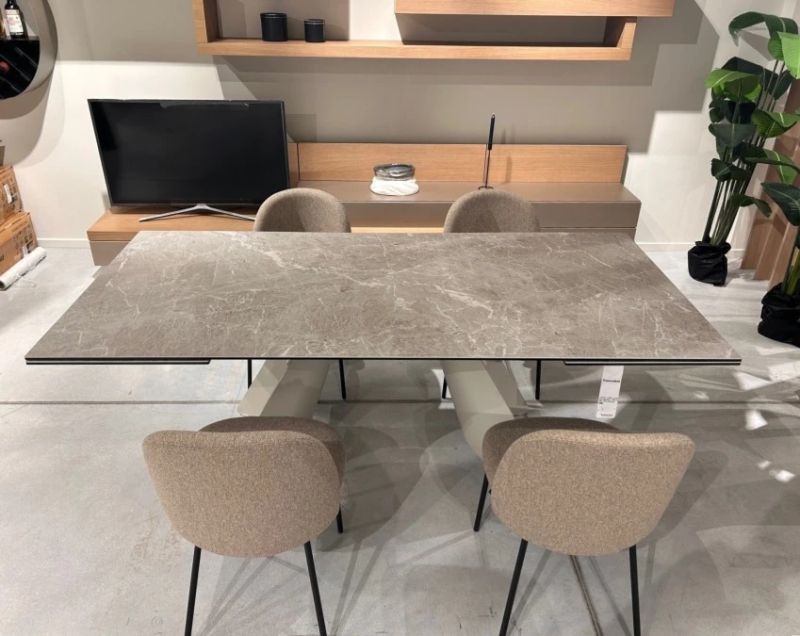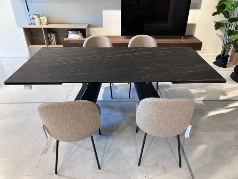 Лека и почти окачена, нежно извитата основа от метал на маса Orion предизвиква образа на балерина на пръсти. Тази елегантна структура се предлага в два варианта: кръгъл и правоъгълен, като и двата се предлагат във фиксирани и разтегателни версии. Благодарение на своята гъвкавост, маса Orion пасва перфектно на всяко изискване за стил. В допълнение, предлаганите плотове от керамика и меламин добавят нотка на изтънченост и персонализация, което ви позволява да създадете уникална и безупречна среда.