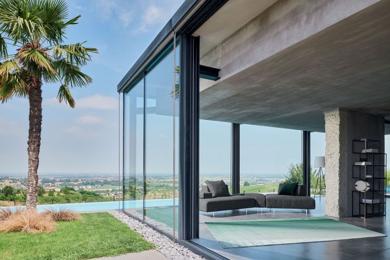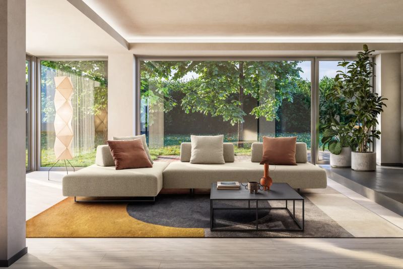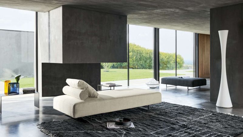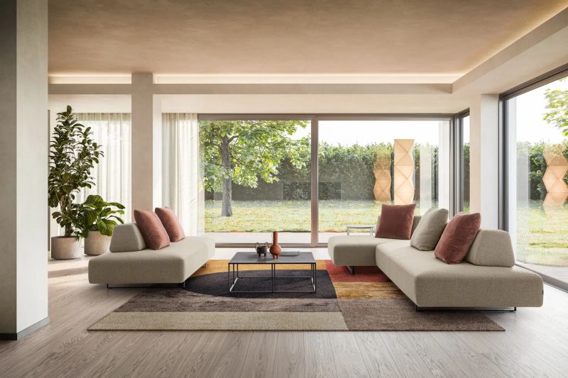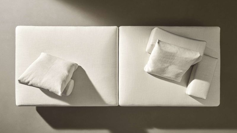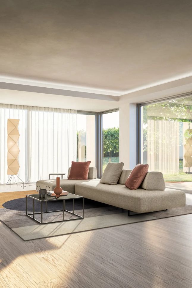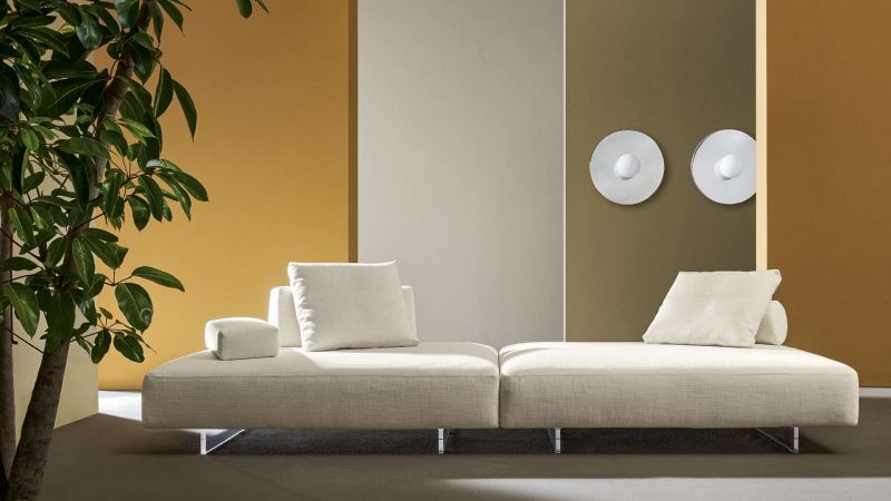 Конфигурацията на този диван е напълно гъвкава, благодарение на подложките и възглавниците, които могат да се променят според ситуациите или просто според вкуса. Има Авеню за сам човек, едно за тези, които имат компания, едно за всеки, който иска да се изтегне или да се свие. Да погледнете другия в очите или да си починете срещу него.