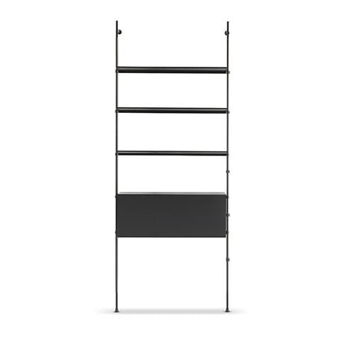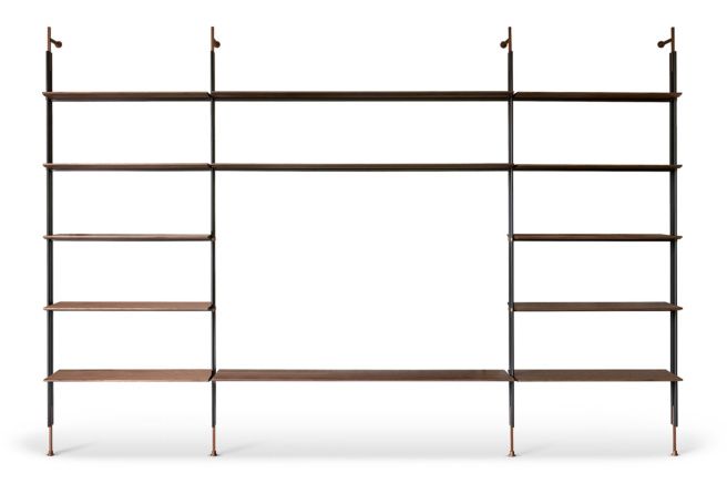Възможността за фиксиране на модерната модулна библиотека Roll към тавана, както и към стената, я прави елемент за обзавеждане, който може да се монтира и в центъра на стаята, за да я раздели на две пространства. Монтирането му към стената става посредством опори, съставени от метални тръби с оловно покритие; както рафтовете, така и детайлите, които излизат от металните тръби, се предлагат в същото покритие като опорите или в различни покрития за игра на контрасти на изключителна елегантност. Модулността на модерната библиотека Roll я прави подходяща за всеки размер стена, както в дома, така и в офиса. Наличен е и модул кутия за съхранение на предмети и книги.