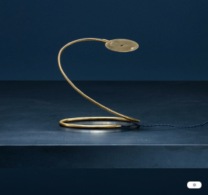 Изработена изцяло от естествен месинг, извитата лампа Herem се състои от твърда основа и гъвкаво рамо, което поддържа тънка овална плоча, скриваща LED платка с безконтактен димер.