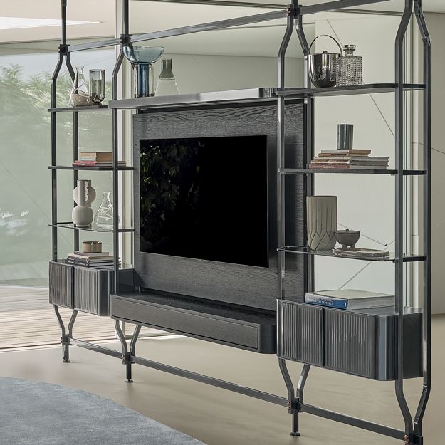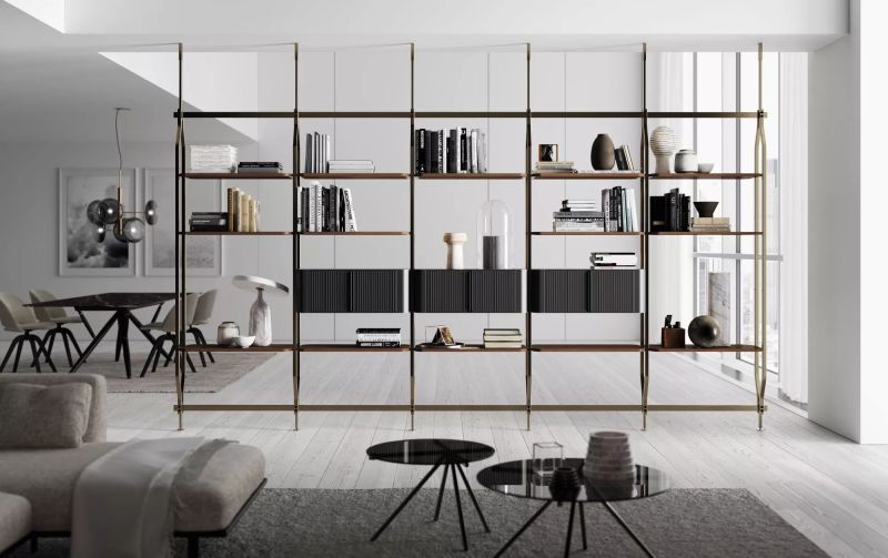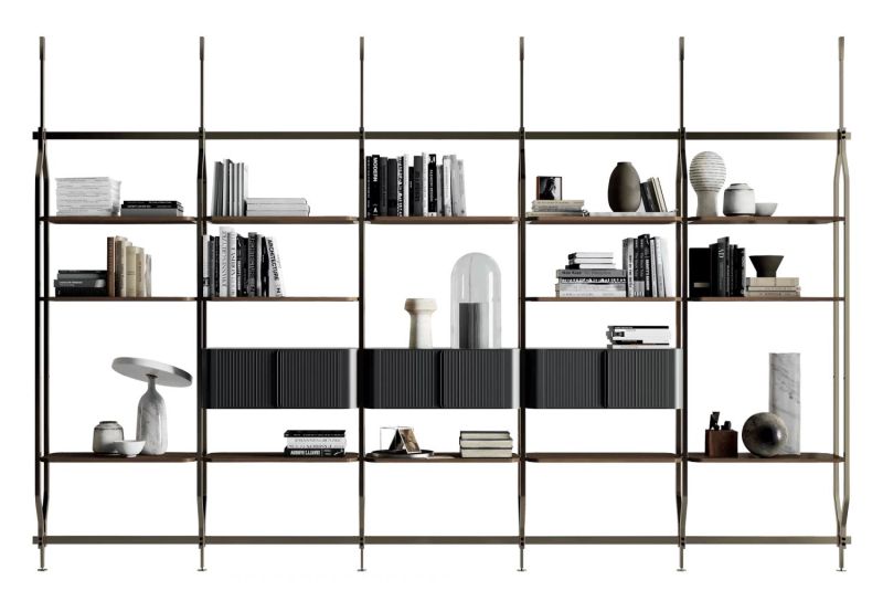 Библиотека с оборудване за закрепване към стена и таван, предназначена за поставяне на максимум 4/8/12/16/20 рафта и/или допълнителни места за съхранение.