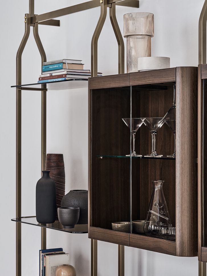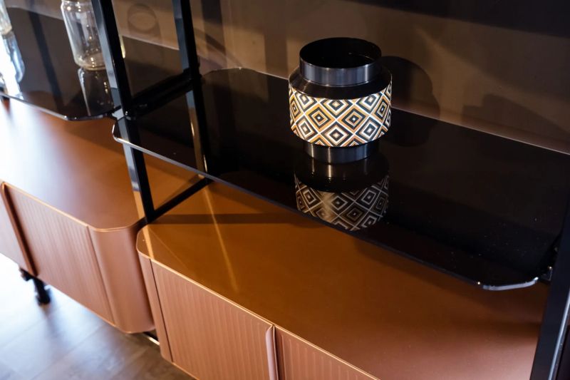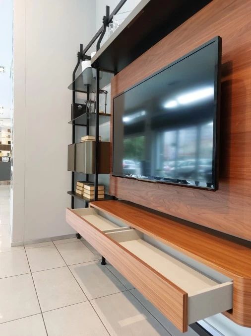 Възможност за стъклени рафтове, рафтове от МДФ в няколко цвята, вградена светеща секция.