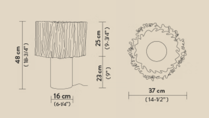 Размери: 37 x 37 x в. 48 см (основа Ø 16 см, дифузор в. 25 см, Ø 37 см)