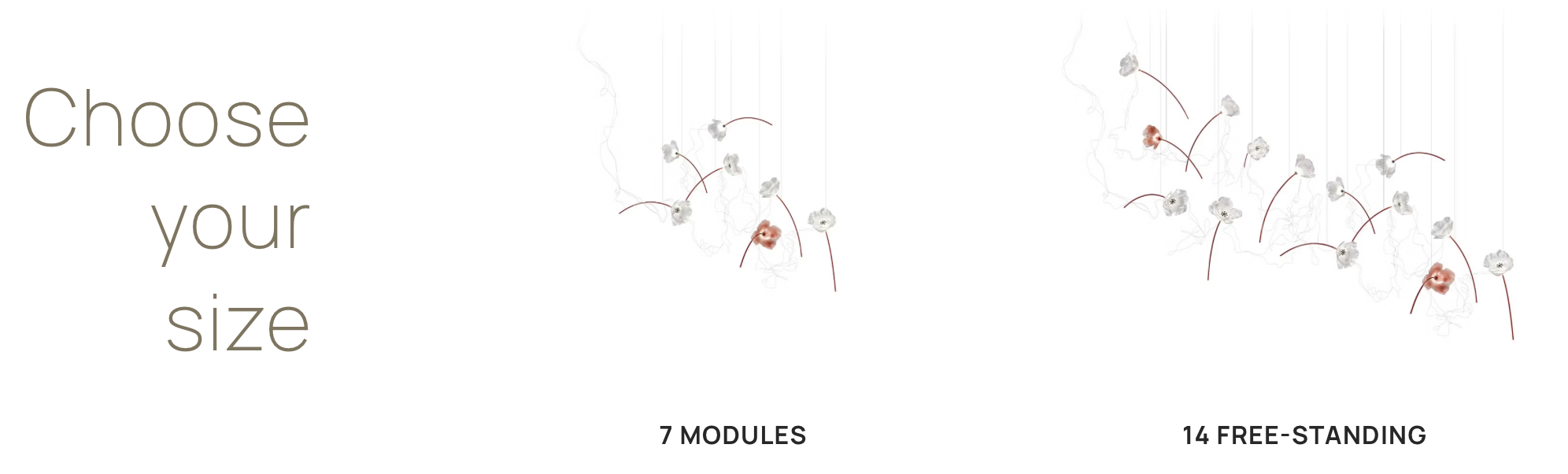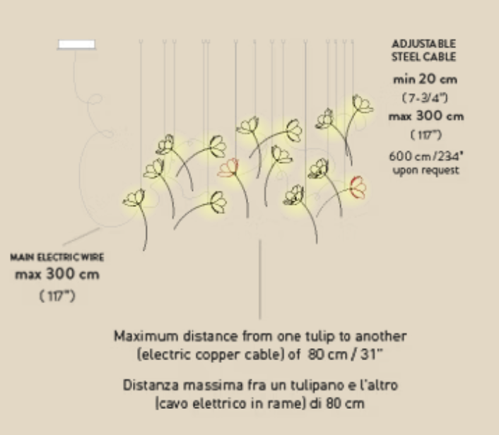 Размери: всеки цвят 13 x 6 (приблизително) см x в. 35 см – максимално разстояние между цветовете 80 см (медна тел)