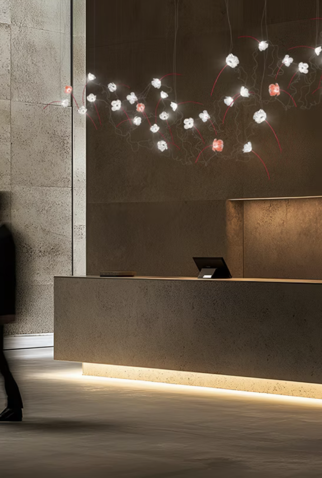 Материали: Lentiflex® с ръчно аерографирано покритие, Prisma Lentiflex® и месинг с червено покритие