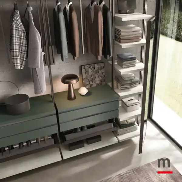 Качеството и красотата се преплитат в това решение, предлагайки уникален поглед към света на творчеството. Дизайнерска концепция, която изследва нови възможни бъдещи перспективи и изоставя традиционните стандарти. Изкуството на майсторството е очевидно в този просторен гардероб, съчетаващ практичност и здравословност. Обширните познания позволяват най-високо ниво на персонализиране за едно завладяващо и пълноценно изживяване. Резултатът е динамично, гъвкаво пространство, отворено за нови възможности. По-внимателният поглед разкрива всичко скрито в един-единствен елемент.