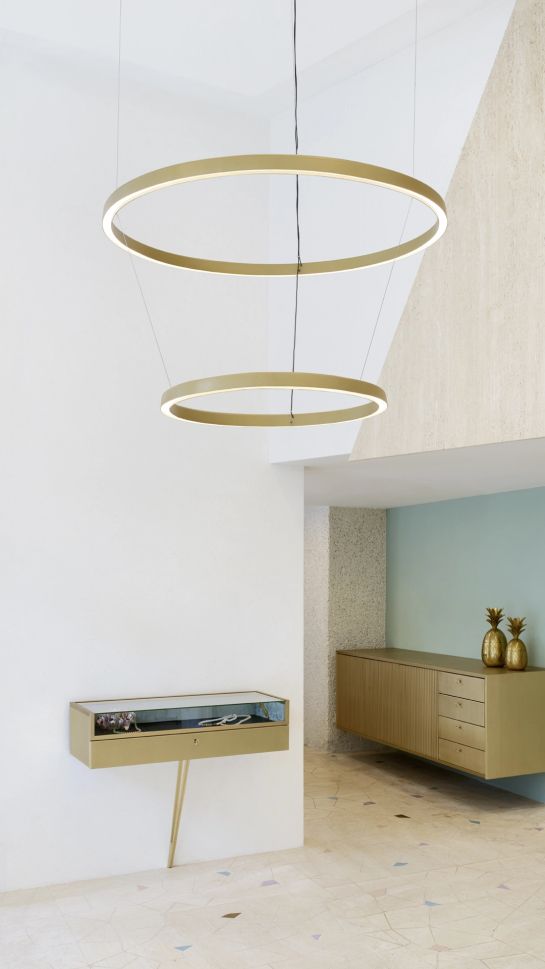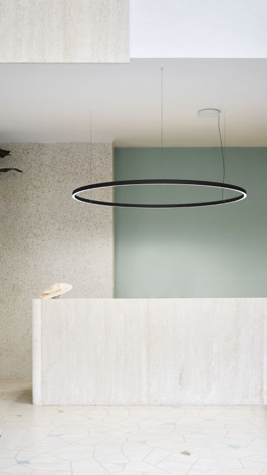 Като продължение на семейството Compendium, Circle е лампа с поетична природа и есенциален дизайн, чиято лекота се поддържа от LED технология, инсталирана така, че да позволява директно излъчване, когато е насочена надолу, или разсеяна светлина, когато е насочена нагоре. Възможно е също така да се комбинират до три пръстена с различен диаметър, за да се създадат различни конфигурации и светлинни сценарии с голямо визуално въздействие.