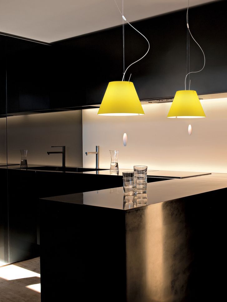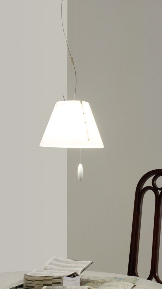 Цветният поликарбонатен абажур добавя индивидуалност към всяка обстановка. Контролният прът е разположен близо до източника на светлина. Противотежест осигурява лесно регулиране на височината.