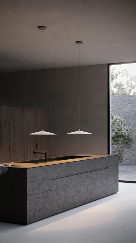 Елегантността и чистотата на формата характеризират семейството висящи лампи „Koinè“, кръстени на значението си за „споделен език“ и на формите си, които ги правят изключително универсални. Източникът на светлина е със специално проектирана минерална леща. Светлинният лъч, разпределен от лещата, е хомогенен и отчетлив, широк светлинен конус с ясно очертани ръбове.