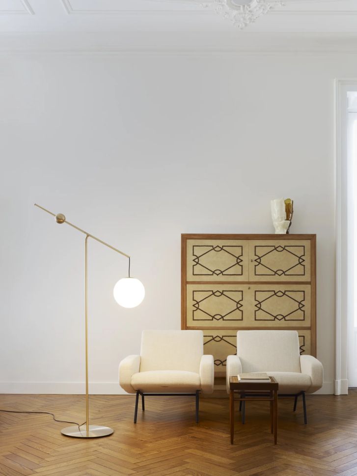 Лампата заема различни позиции чрез използване на противотежест, натискане на бутона в горната част на сферата, освобождаване на пружина и противотежестта може свободно да се плъзга по парата, което позволява промяна на позицията на дифузера нагоре и надолу.