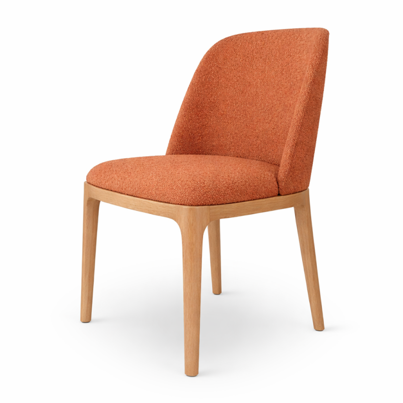Елегнатен стол с избор на тапицерия и цвят за краката от масивен бук по каталог на фабриката.