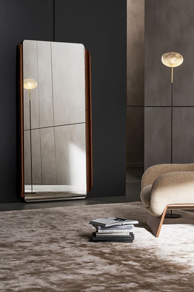 Предлага се в три различни размера, огледалото Olos има стойка за пода, а в светлата версия, LED ленти могат да бъдат интегрирани между огледалото и рамката, като по този начин генерират серия от ярки светлосянкови ефекти, превръщайки огледалото Olos в съчетание на формална есенция.