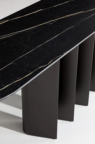 Основата е с четири крака, едновременно масивни, елегантни и заострени, което я прави съвременна конзола, която пленява с уникалния си дизайн. По този начин, възприятието ви за тежестта на конзолата се променя, докато се движите около нея.