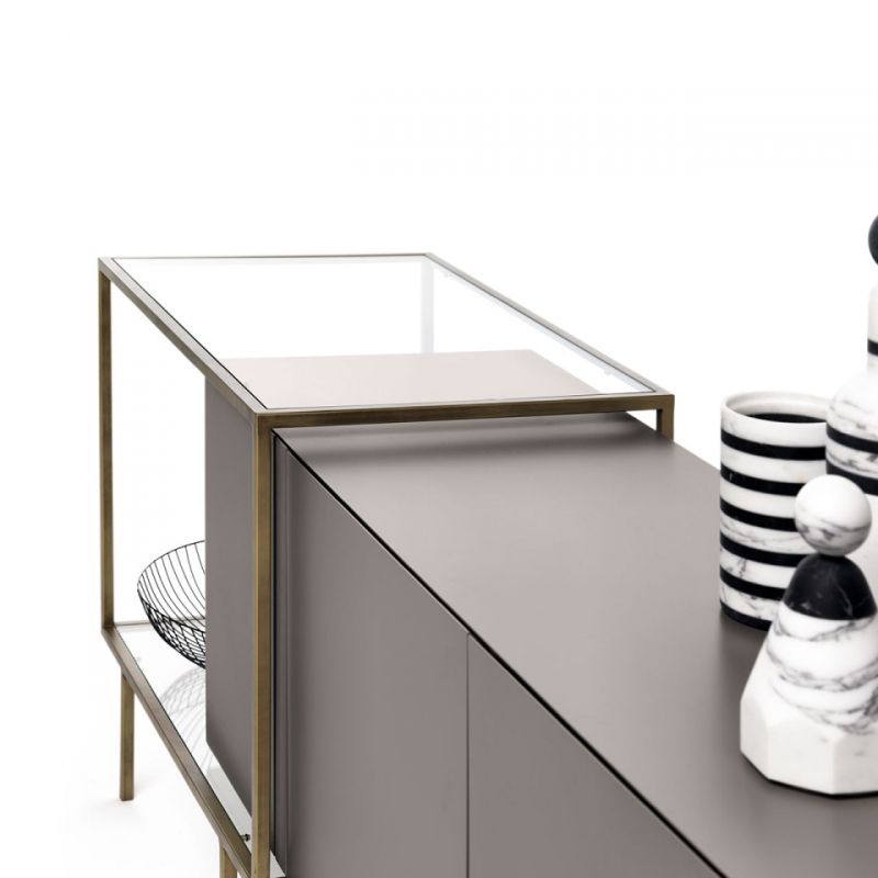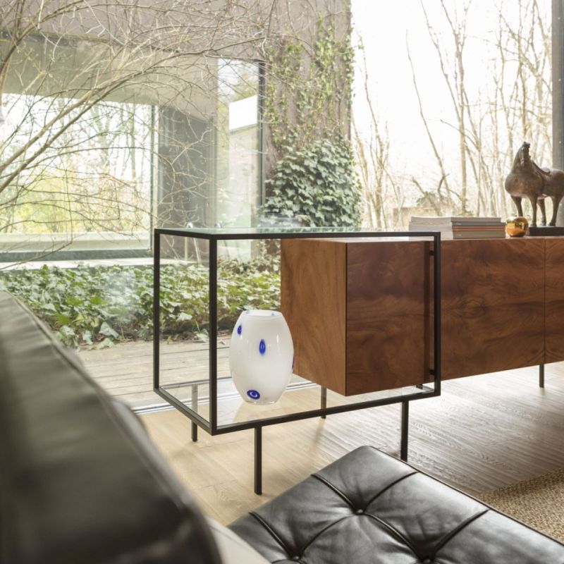 Шкафът и бюфетът Zoom са складови модули с конструкция от MDF, лакиран във всички цветове според картата с мостри или фурнирован с махагоново перо, и метална рамка в черно или патиниран бронз. И двата шкафа за съхранение са с линеен и геометричен дизайн с отворени и затворени обеми. Елегантни и съвременни, те се вписват във всяка среда с отчетлива идентичност.