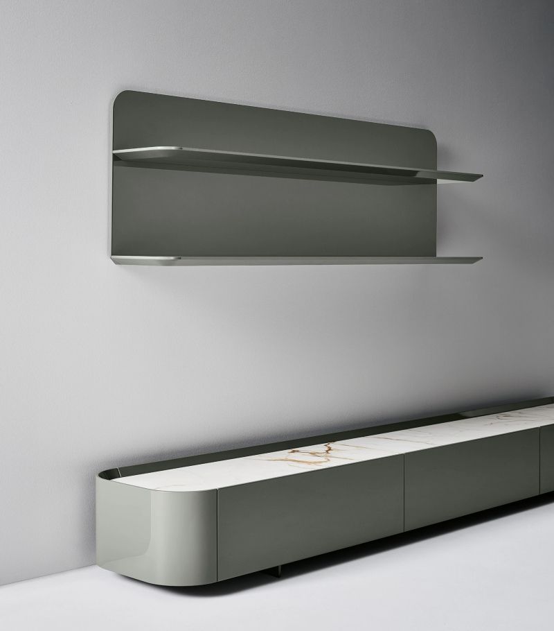 Bonaldo представя ТВ шкаф и рафт Arragan - телевизионен модул с три чекмеджета за съхранение и система от рафтове, предназначени да разширят композиционните възможности на стената в дневната. ТВ шкафът и стенните елементи могат да се използват поотделно или да се комбинират в свободни конфигурации, което прави организацията на стената неразделна част от цялостния дизайн. ТВ шкафът се характеризира с есенциални обеми, непрекъснати повърхности и меки ръбове, докато системата от рафтове въвежда лек графичен ритъм и разширява функционалните възможности на композицията. Структурата на ТВ шкафа е изработена от лакирано дърво; плотът може да бъде от дърво, в съответствие със структурата, или от керамика, в разнообразие от покрития, за многоматериална интерпретация. Рафтовете, предлагани в два размера, се предлагат в гланцово или матово лакирано дърво.