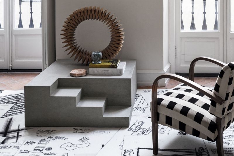 Това е монолитна скулптурна маса, която е изключително семпла и линейна, но с добавяне на елемент, който смекчава строгостта и твърдостта на обекта: това е поредица от стъпала, които насочват вниманието към света на архитектурата, като напомнят за стълбите на сгради и паметници и стъпалата, водещи към вратата на къща.