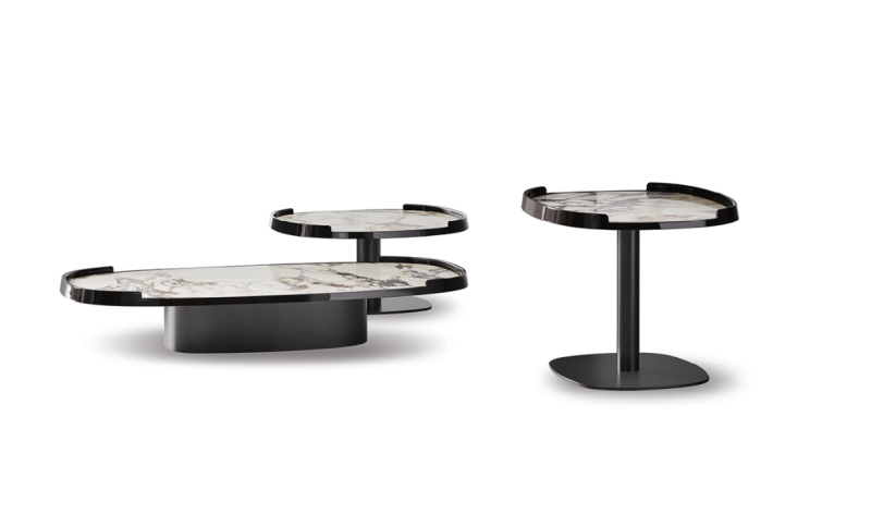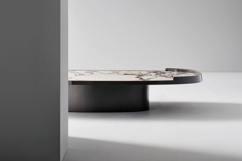 Gem е семейство масички за кафе, предназначени да създават динамични и гъвкави композиции: благодарение на разнообразието от форми, основи, размери, височини, материали и покрития, Gem позволява постоянно променящи се комбинации. Плотът, предлаган в стъкло или керамика в широка гама от опции, е подчертан от тънка периметърна рамка от гланцово лакирано дърво - прецизен, дискретен, но отличителен ръб, който подчертава чистотата на формата и откроява материала. Металната конструкция допълнително подобрява дизайна чрез две различни комбинации с плота: основата с бронзово покритие е съчетана с гланцово лакиран дървен кант в гланцово кафяво, докато основата с оловно покритие е комбинирана с гланцово лакиран дървен кант в гланцово сиво, създавайки изискани и хармонични двойки.