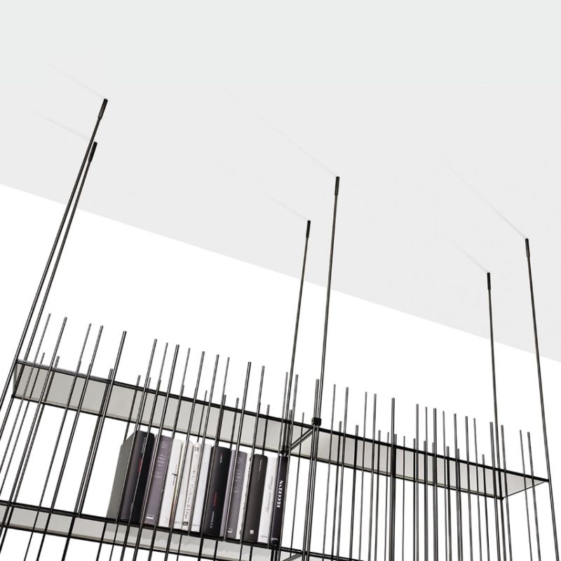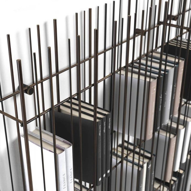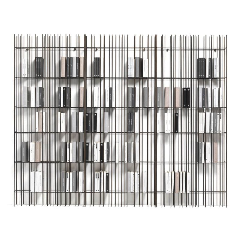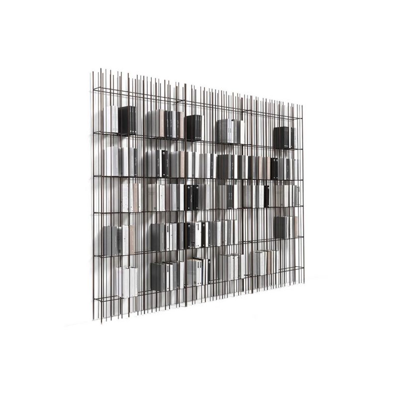 Metrica е метална библиотека, предлагана в титаниево, полирано и златно покритие, с прозрачни кристални рафтове, предлагани в бронз или зелено. Структурата е семпла, ритъмът е маркиран от железни пръти, фиксирани на различни интервали върху открито строга структура, в която книгите и предметите, поставени в нея, допълват формата, като от време на време изписват нови композиции.