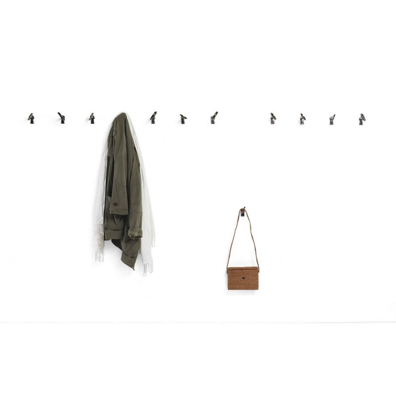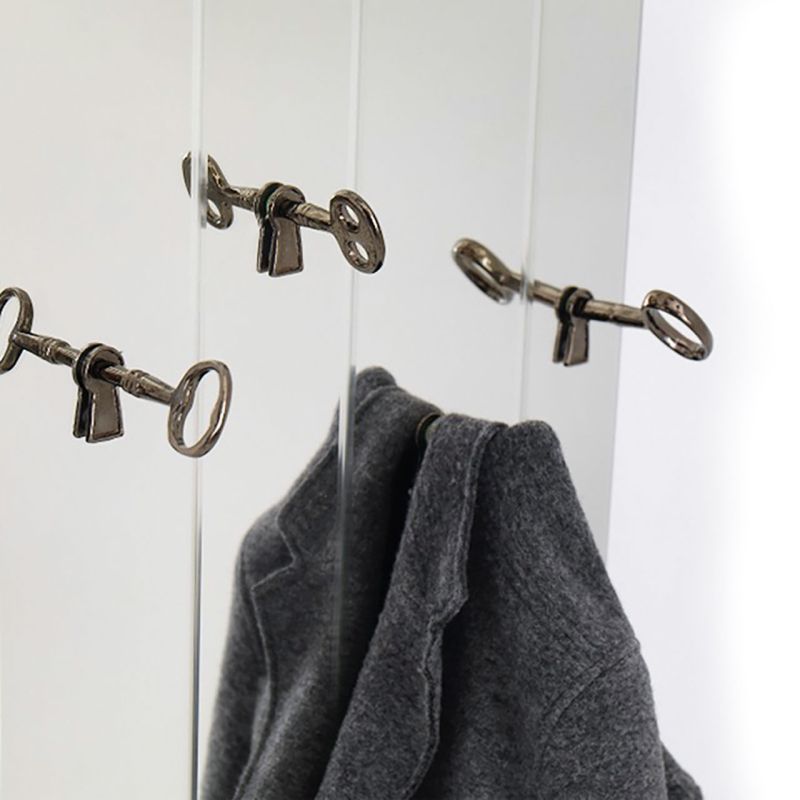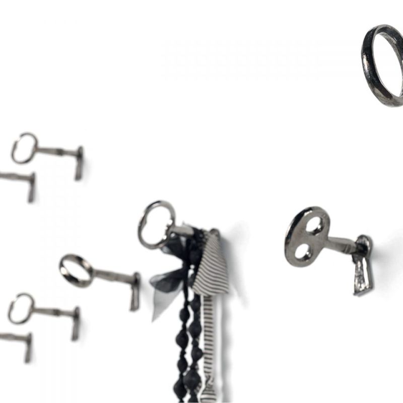 Memorie е комплект от 4 ключа за закачалки за дрехи от лят месинг с черно никелово покритие. Ключове в стар стил с обновен и изненадващ начин на употреба, могат да се закрепят свободно към стената по желание. Предлага се и с огледало.