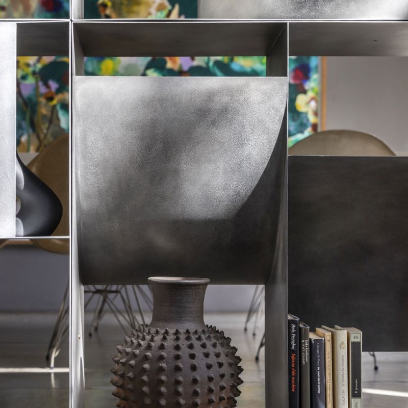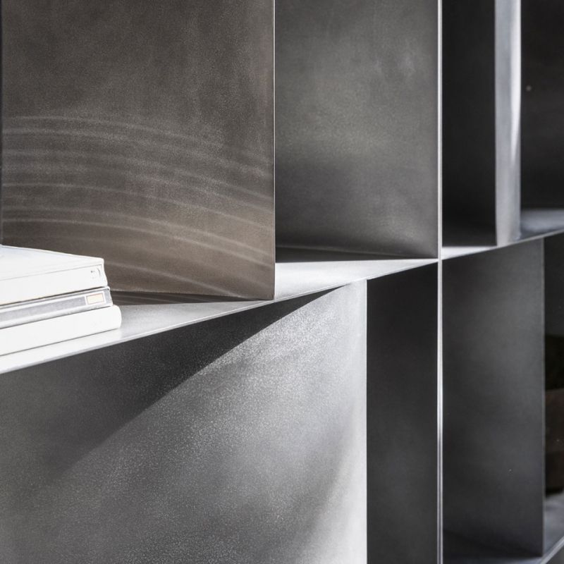 Функционален и декоративен метален контейнер, той организира и маркира пространството в името на гъвкавостта. Предлага се в стенен и подов вариант. Модулите могат да бъдат поставени един до друг, създавайки безкрайни композиции, адаптиращи се към всяко пространство и нужди, а в подовия вариант може да се използва като разделителен елемент за разделяне на големи пространства. Вдлъбнати и изпъкнали извивки се редуват и генерират винаги различни последователности от плътни тела и кухини, пораждайки динамични и скулптурни елементи, които свободно обзавеждат домашното пространство.