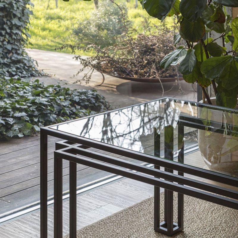 Hotline е маса с метална рамка и стъклен плот. Конструкцията се предлага в черно или патиниран бронз; плотът се предлага в прозрачно стъкло, прозрачно черно стъкло или прозрачно бронзово стъкло.
