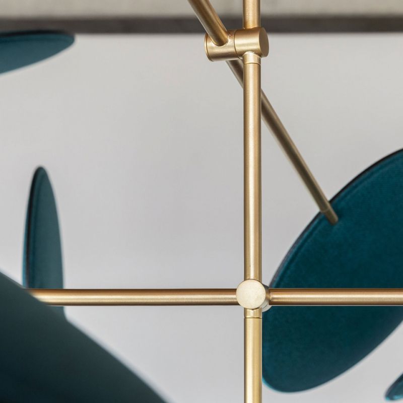 Таванна лампа, която иска да бъде главният герой в трапезарията. Благодарение на стройната си метална конструкция и регулируемите елементи, тя привлича вниманието и придава на атмосферата на дома силен индивидуален вид.