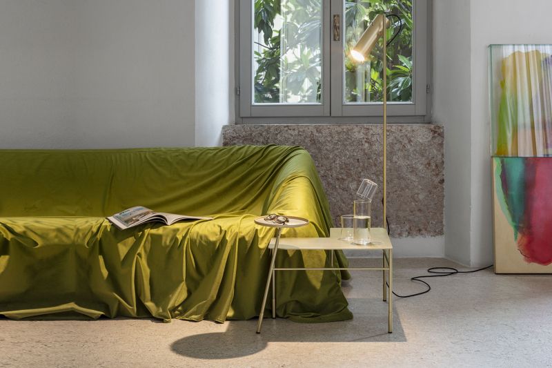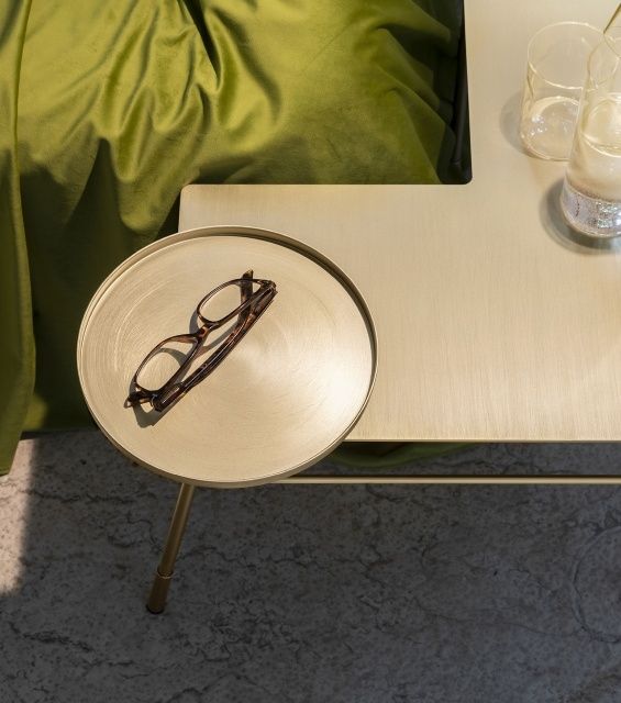 Dasè е ъглова метална масичка за кафе с лампа и поднос. Предлага се в черно или сатенено месингово боядисано. С елегантен и лек дизайн, много функционална в близост до дивани или фотьойли. Един предмет изпълнява три функции: плот на масата и, благодарение на два от краката, които са удължени в сравнение с останалите, поднос и лампа.