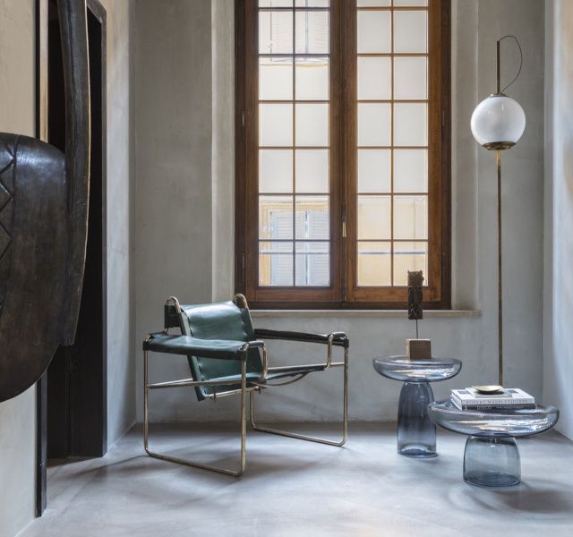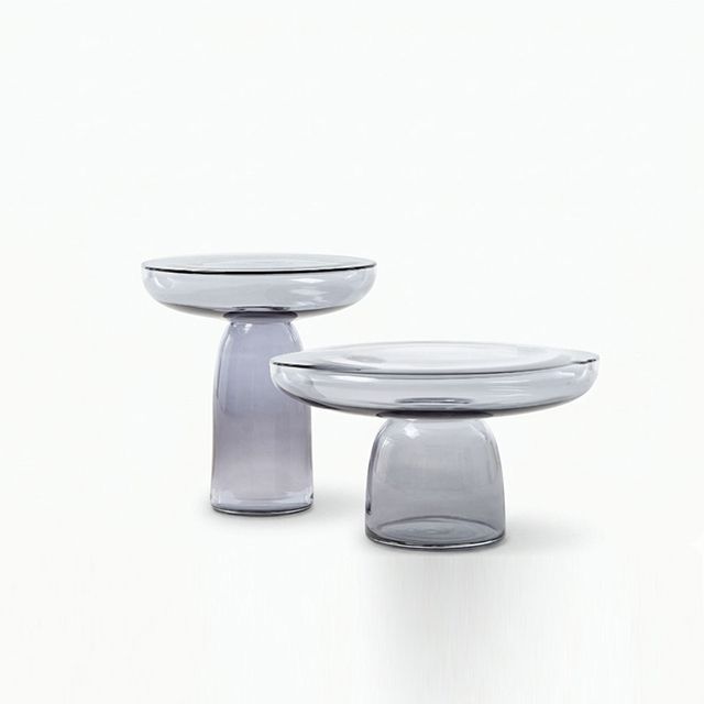 Olo Glass е семейство странични масички от духано стъкло, предлагани в опушено или стоманено покритие. С есенциална форма, обогатени с прозрачност и отражения, те подобряват дневната площ.